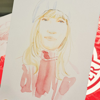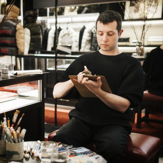Once they came up with their favourite combination, clients and guests were treated with a unique watercolour portrait wearing their customized Moncler puffer jacket by yours truly.